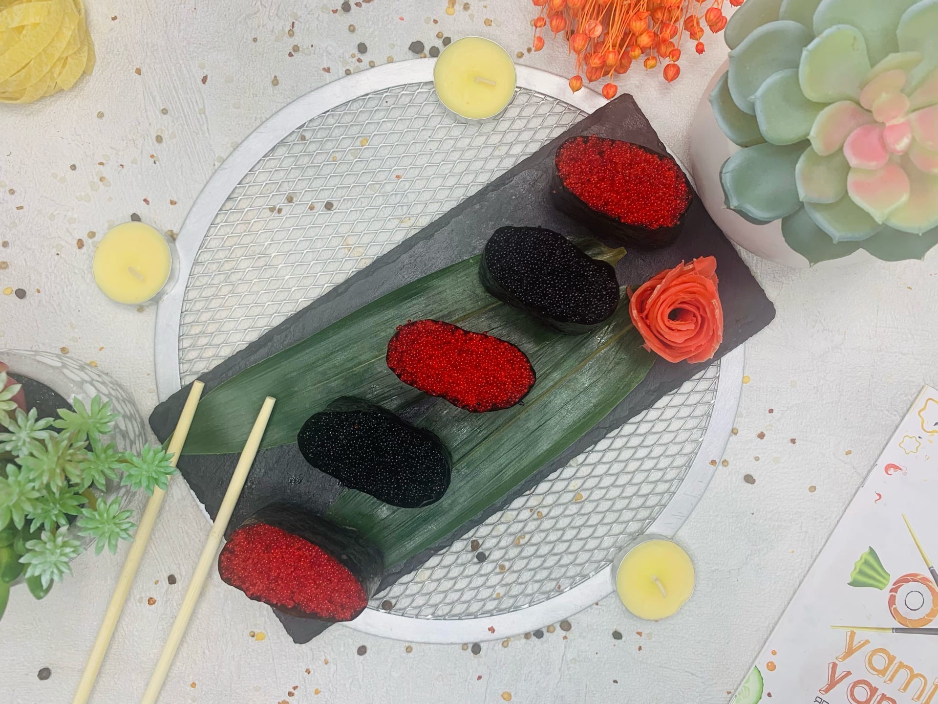 Сочные онигири с угрем, икрой масаго, сливочным сыром и соусом унаги. Подается в специальной упаковке, сохраняющей хрусткость и свежесть нори. Порция 1 штука.